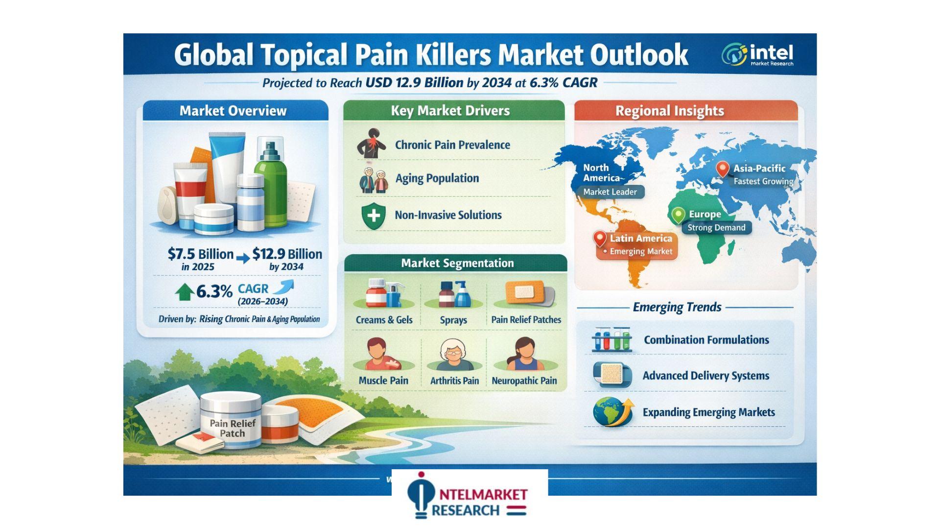 According to a new report from Intel Market Research, the global topical pain killers market was valued at USD 7.5 billion in 2025 and is projected to reach USD 12.9 billion by 2034, growing at a CAGR of 6.3% during the forecast period (2026–2034). This growth is driven by increasing prevalence of chronic pain conditions, rising geriatric population, and growing preference for non-invasive pain management solutions.