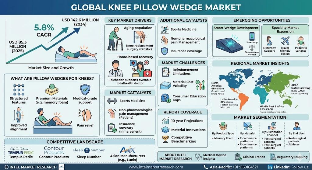 According to a new report from Intel Market Research, the global Pillow Wedges For Knees market was valued at USD 85.3 million in 2025 and is projected to reach USD 142.6 million by 2034, growing at a steady CAGR of 5.8% during the forecast period (2026-2034). This growth stems from increasing orthopedic awareness, aging populations requiring knee support, and advancements in ergonomic cushion technologies.