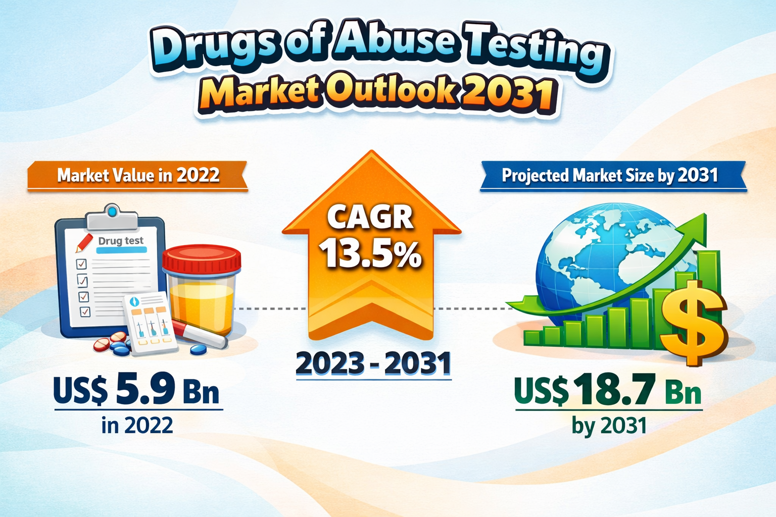 The Drugs of Abuse Testing Market is gaining remarkable momentum as nations across the globe intensify their efforts to address the growing burden of substance abuse. Increasing drug consumption, coupled with rising awareness regarding its harmful health and social consequences, has significantly boosted the demand for reliable drug testing solutions. The market, valued at US$ 5.9 Bn in 2022, is projected to reach US$ 18.7 Bn by 2031, expanding at a CAGR of 13.5% during the forecast period.