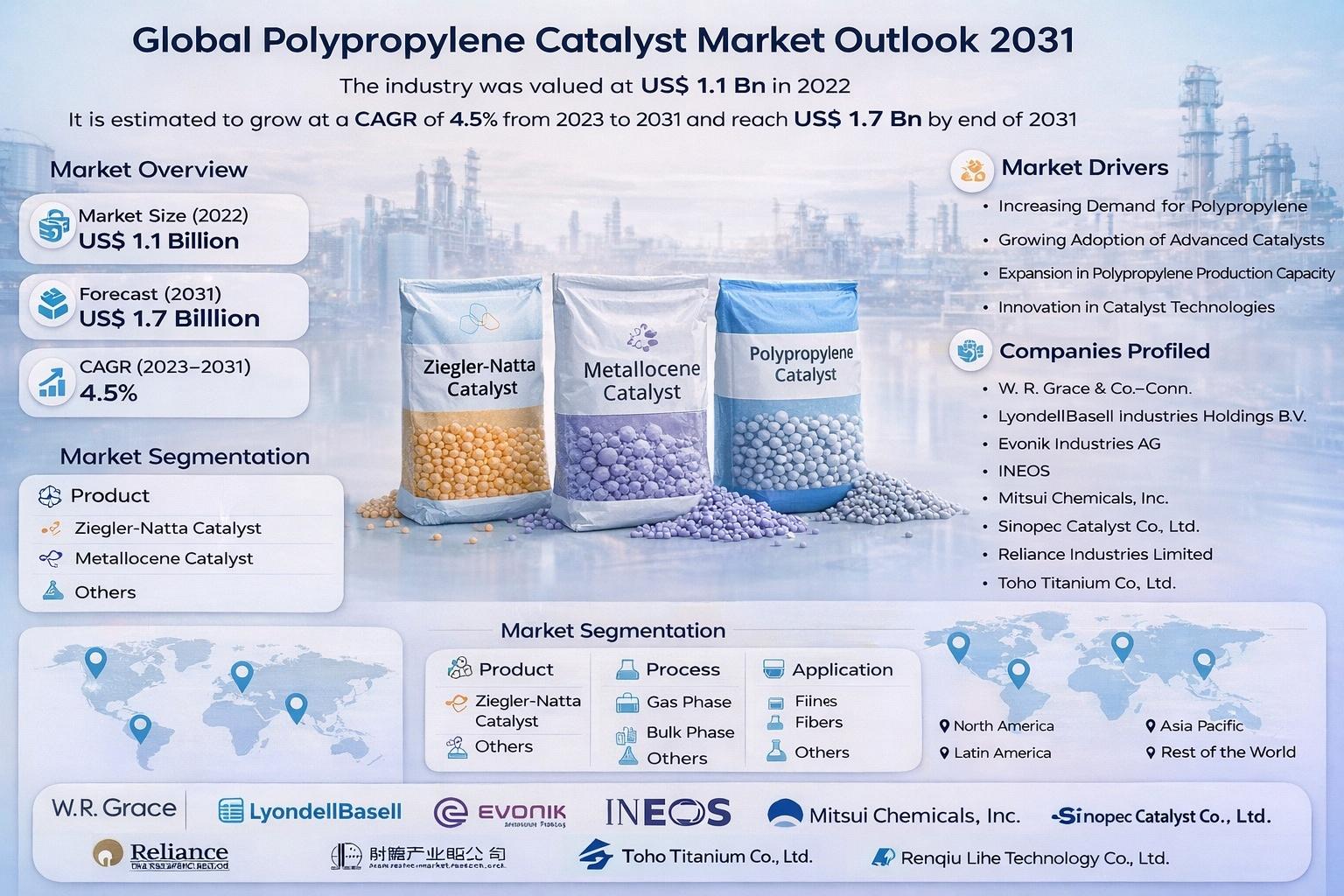 With a projected value of US$ 1.7 billion by 2031 and a steady CAGR of 4.5%, the polypropylene catalyst market represents both a technological and economic opportunity for manufacturers, investors, and industrial players worldwide.
