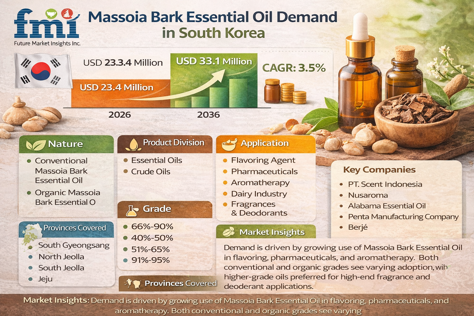 Demand Analysis of Massoia Bark Essential Oil in South Korea’s Fragrance and Wellness Sector