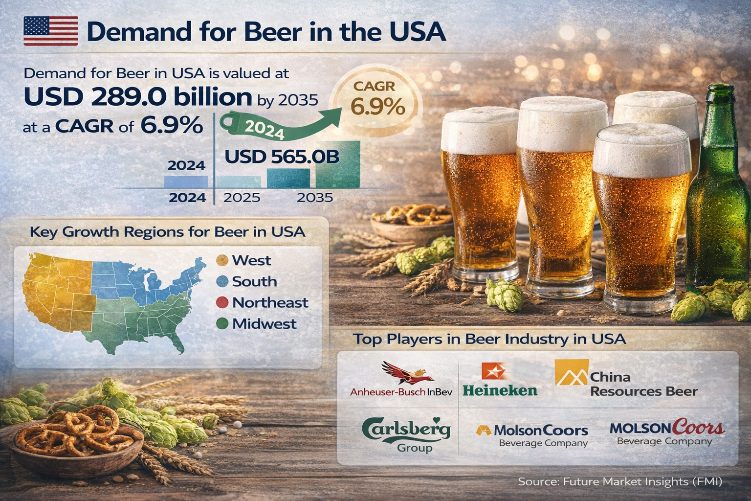 In summary, demand for beer in the United States is poised for sustained value growth through 2035. Anchored by strong pricing power, premium brand resilience, multipack retail dominance, and the revival of draft consumption in social venues, the industry presents a steady and strategically balanced outlook. As regional production hubs reinforce distribution agility and brand portfolios continue to diversify, the U.S. beer market stands positioned to nearly double in value over the next decade—reflecting both consumer loyalty and the enduring role of beer in American social culture.